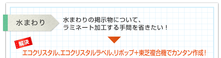水に強い耐水紙エコクリスタルなら手洗い場やトイレはもちろん、屋外でも利用できます。