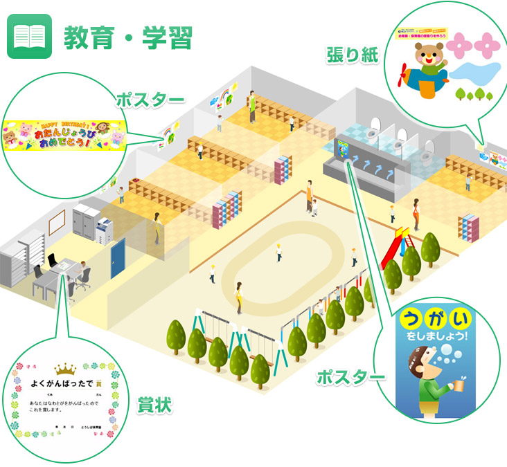 節分、ひなまつり、こどもの日、クリスマスなど、各イベントでの掲示物や立体的なクラフトも型紙データがあれば簡単に作成できます。
