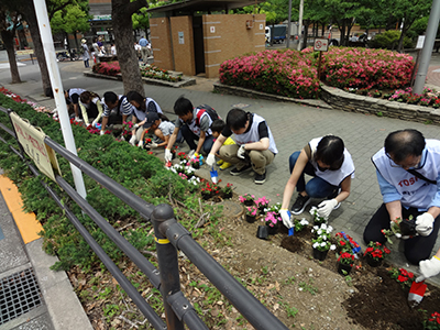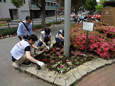 Stopped providing free plastic bags / cutlery - 近隣の企業とともに事業所周辺の花植活動に参加しました。