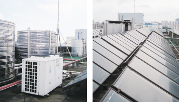 また屋上の緑化、太陽光パネル設置などにより多角的な排出量削減に取り組んでいます。