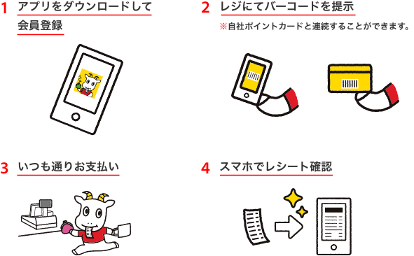 これまで紙を提供されていたレシートを、「電子レシート」としてスマートフォンで受信・管理できる便利なアプリです。買い物客にとっての「お財布がふくらむ」「管理が大変」といった紙のレシートでのお困りごとを解決し、導入店舗にとってはコスト削減や環境負荷の軽減にも貢献。