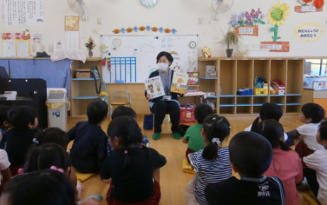 さっそく翌2011年より活動を開始。市の窓口にボランティア実施の申し入れを行い、小学校や幼稚園・保育園に受け入れていただく形で実施しています。子たちは、初対面である私たちが読み聞かせをすることがとても新鮮に感じるようです。読み聞かせが終わると私たちに近寄ってきてお礼を言ってくれることも。私たち自身も癒される瞬間ですね。ボランティアではありますが、私たち自身も多くのものを得て成長させていただいています。
