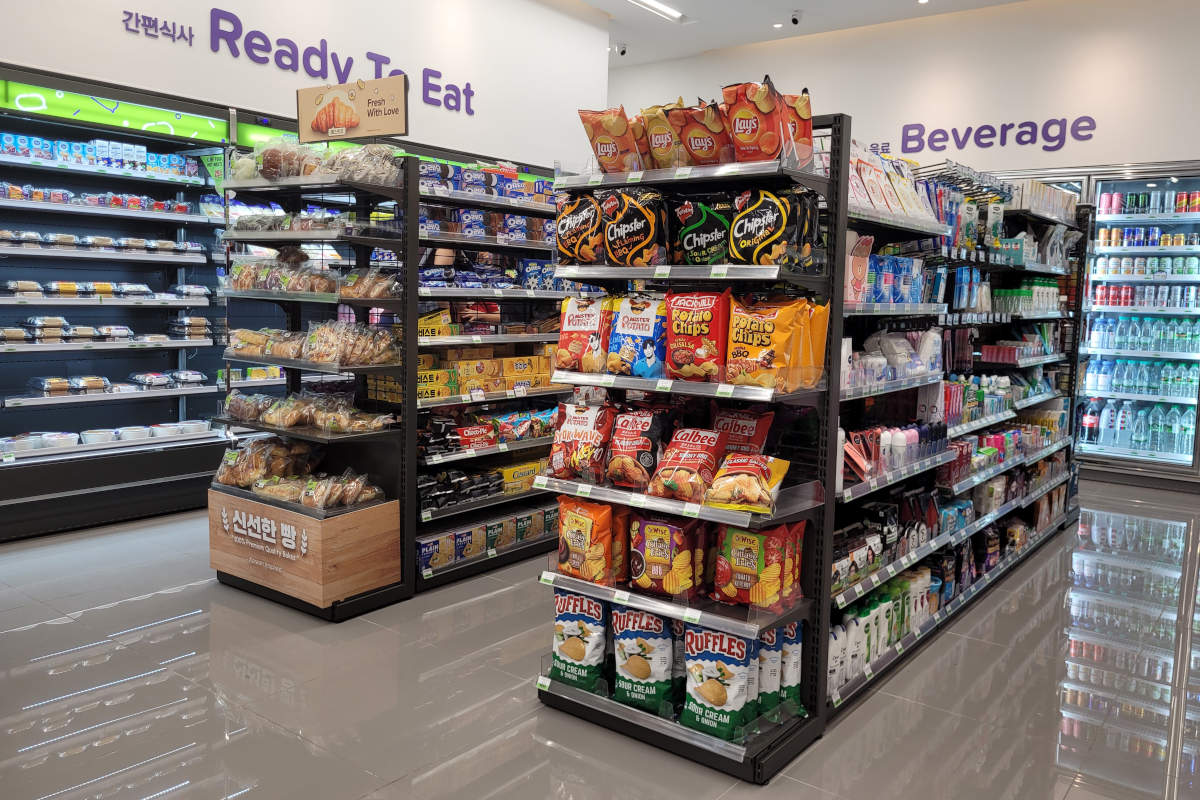 L型ゴンドラでは、高い位置にある商品は高額に、低い位置にある商品は特売品や安価な商品が並んでいると感じる購買心理も加味しましょう。利率の高い商品を最下段に設置することで、高い収益性が見込めます。