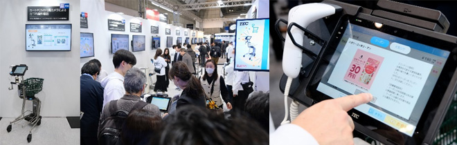 量販店ソリューションのコーナーでは、連日多くの来場者がピピットセルフの新機能を体験しました