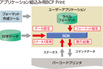 ラベルフォーマットやライブラリ、サンプルコードなど専用の印刷コマンドを覚える必要もなくアプリを開発し、工数を削減。また、Windows、iOS、Androidでのラベル発行をサポートします。