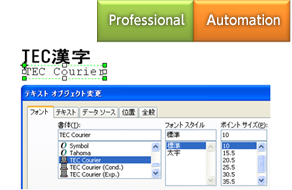 BarTenderではWindows標準のTrueTypeフォントを使って印刷することはもちろん、プリンタに内蔵されている専用フォントやバーコードを印刷することができます。