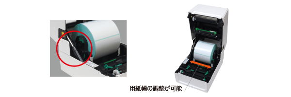 用紙交換はカバーを開き、ガイドを開くだけ。用紙幅の調整も簡単。また、カバーが閉まる際、手を挟まないようダンパーを搭載しました。