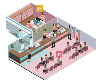 24時間運用も可能となり患者様・ご家族・医療スタッフもお気軽に利用できます。また遠隔店舗監視により、電話問い合わせにも即時対応可能となります。