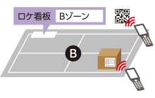 完成品の現品票と完成品置き場のロケーション看板をスキャンして紐付け。