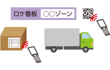 現品票と入庫場所のロケーション看板をスキャンし、モノと保管場所を紐付け。