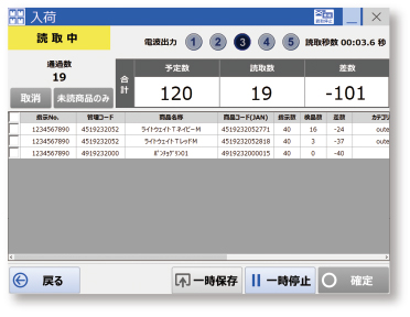 出荷検品店舗への出荷の際も、画面上でRFタグの読み取りを確認することで検品が可能です。商品ごとの細かな登録や目視の必要がなく、効率的な出荷ができます。