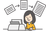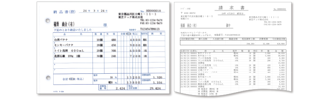 項目追加や印字位置変更にも柔軟に対応。手書きで発行していた指定伝票も容易にシステム化できます。納品書に続けて自動で送り状を発行したり、売上一括入力のあとで、連続で伝票を発行できるなど、業務の流れに合わせて自在にカスタマイズできます。