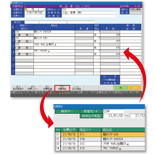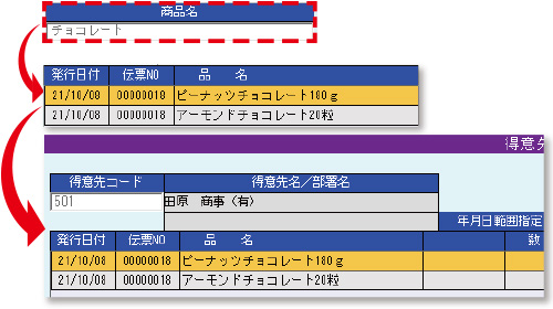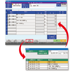 売上履歴の検索時や、納品書の発行時に商品名の一部から商品を検索できます。