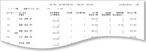 買掛残高一覧表・支払一覧表