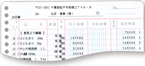 仕入先毎の取引を手書き用の元帳に印字できます。
