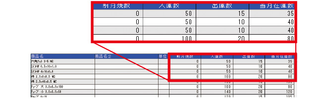 入出庫・在庫状況のイメージ図