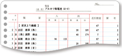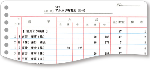 コクヨ製受払表に、入出庫と差引数量を随時出力できます。