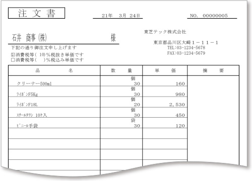 注文書用紙のイメージ図