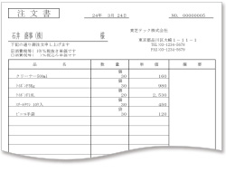 仕入先別・商品別・納期別などでのデータ管理が可能。コクヨの注文書用紙(ウ-317)、及びA4用紙への出力に対応します。