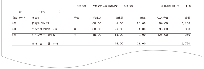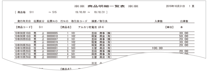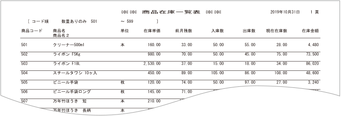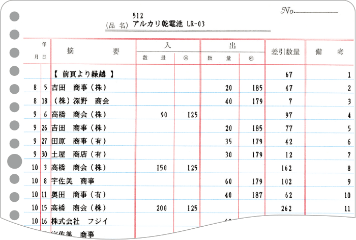 こちらの帳表サンプルはレーザープリンタで出力したサンプルです。(受払帳を除く)