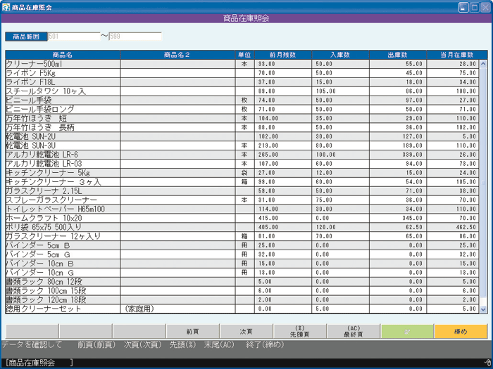 データ入力は、簡単でわかりやすい操作性を実現。日々の入出庫データから在庫管理業務を支援する各種集計や帳表出力を行います。