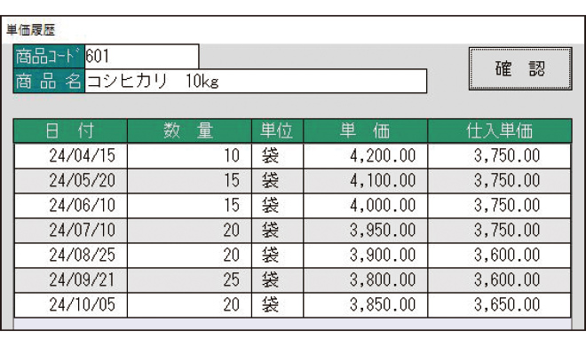 お取引先毎に過去20回の取引単価を履歴として確認できます。