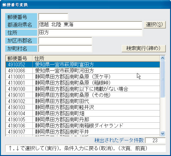 煩雑な住所入力も郵便番号辞書機能で簡単入力。住所の読みや文字での検索も行えます。