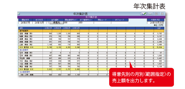 - お客様が必要とする集計表が自由に組合せ。EXCEL書式、CSVに出力可能