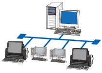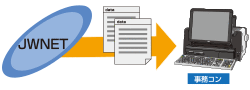 複数の事務コンを接続して企業内ネットワークに接続できますので、基幹システムからデータを受け取っての伝票・帳票作業が効率良くできます。