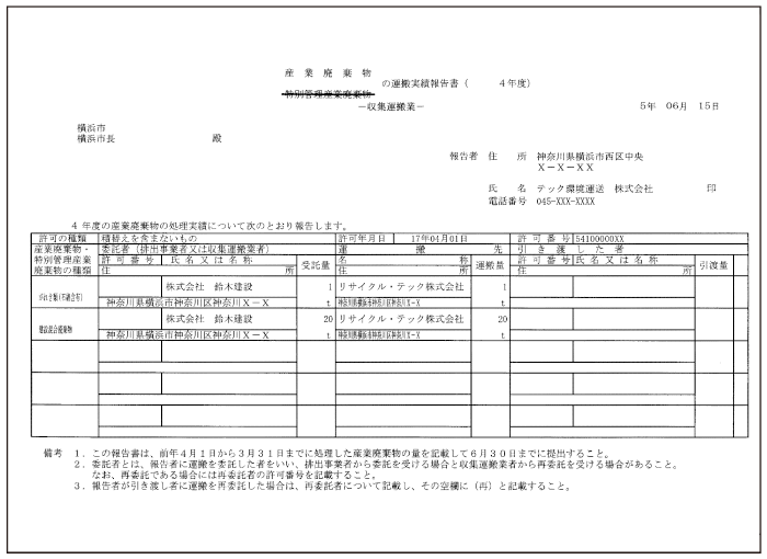 廃棄物の運搬実績、処分実績を自動作成。またCSVファイルでも出力可能です。