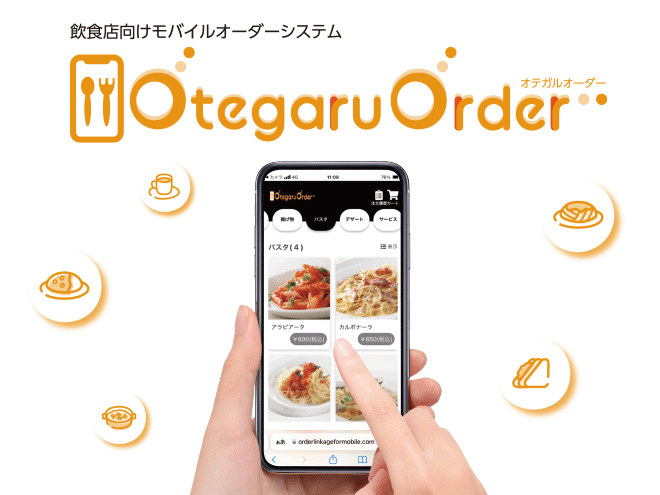 オーダーもおてがる!デリバリー、テイクアウトもおてがるにつなぐモバイルオーダーシステム POSシステムのリーディングカンパニーならではの高機能・高拡張性モバイルオーダーシステムです。