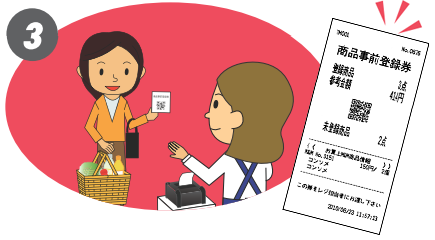 商品のスキャンが終わったら、商品事前登録券を渡します。