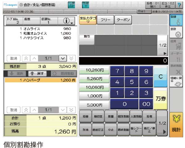 グループのお客様に「割勘」もできる、「個別会計機能」と「均等割勘機能」