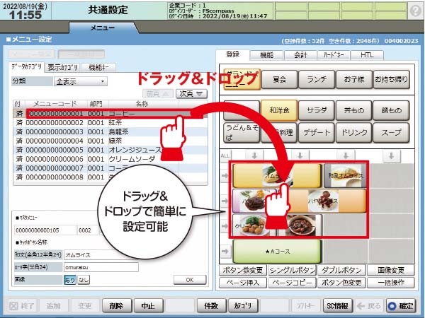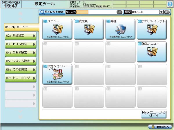 店舗ごとによく使う業務は「Myメニュー」登録(ドラッグ&ドロップ対応)