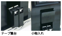 金額を読み上げるアナウンス機能は、お客さまが安心できる親切機能※。店舗で聞き取りやすいスキャン音、お店の雰囲気に合わせた特殊効果音もご用意。そしてスキャナ部の下には、多目的に使える便利な小物入れと、2つのテープ置台も標準装備。ちょっとした心配りが満載です。