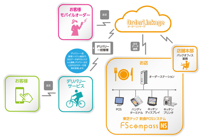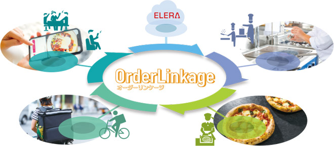 「OrderLinkage(オーダーリンケージ)」は、デリバリーやモバイルオーダーなど外部サービスからの注文を、店舗のPOS・OESと連携させる、グローバルリテールプラットフォーム「ELERA」経由のクラウドサービスです。