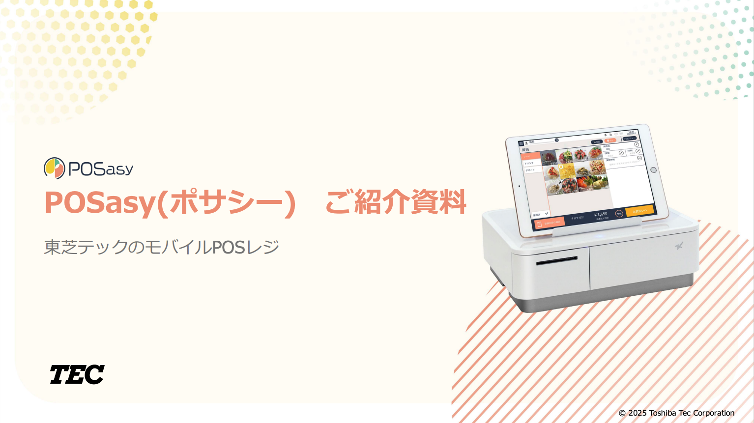 本資料は、POS市場で長年の実績を持つ東芝テックが提供するモバイルPOSレジ「POSasy(ポサシー)」のサービス内容についてご紹介するものです。