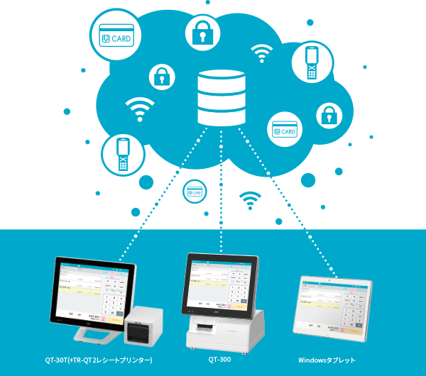 サービス利用型のPOSなのでハード機器に制限がありません。POS専用機や汎用タブレット機器など、あらゆる機器でご利用が可能。売り場の特徴や販売シーンに合わせて最適な機器構成をタイムレスに組み立てることができます。