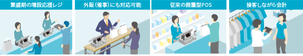 Point2 売り場や販売シーンに合わせて最適な端末と組み合わせ可能