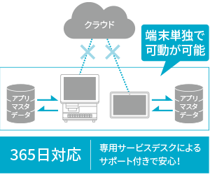 POSレジやタブレット内にマスタデータを保持するため、万が一インターネットに繋がらないなどの通信障害が起こった際でもインターネットに接続せずに一時的にレジ業務を続けることができます。