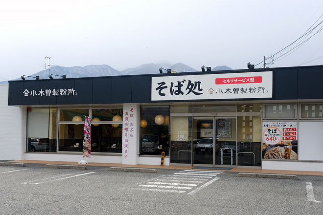 小木曽製粉所 駒ケ根店は、地場産のそば粉による本格信州蕎麦がリーズナブルに味わえることで人気のセルフそば店。