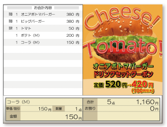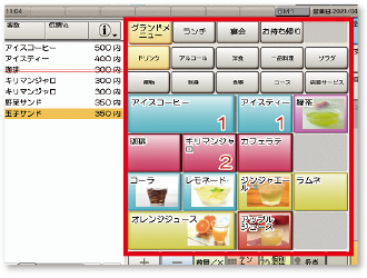写真付きのメニューボタン、大文字の登録、数量表示など、直感的でスムーズな操作が可能です。