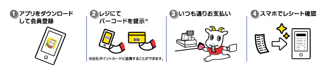 東芝テックが提供している電子レシートがスマートフォンに届くレシート管理サービスです。