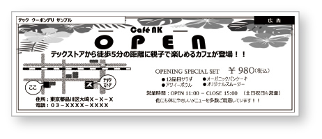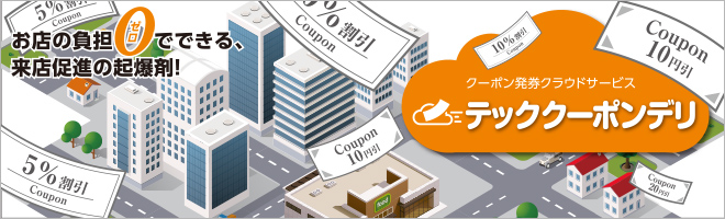 テッククーポンデリは、メーカー提供による販促クーポンを、クラウドを介してPOSターミナルで発券。お店の負担なしで、再来店促進につなげる、お店もお客様もうれしいシステムです。