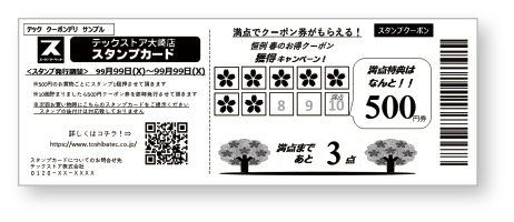 特定商品のお買い上げ時に使用する値引き券などクーポンコードを付けて発行します。