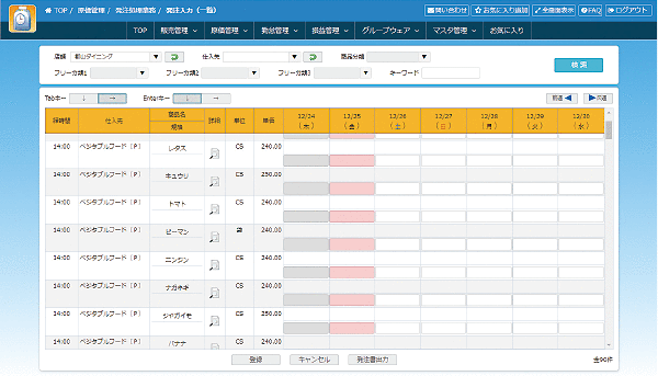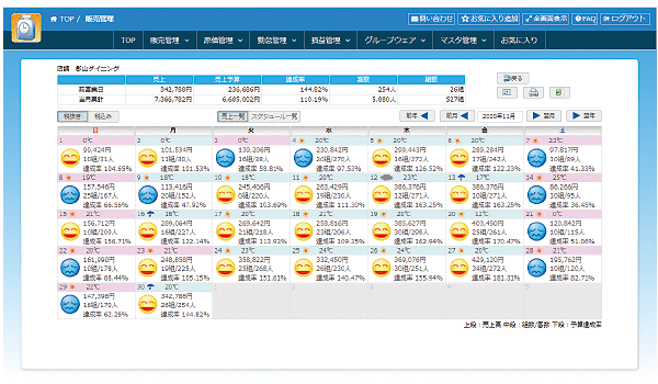 POSターミナルやPCなどから入力されたデータをデータセンターで一元管理し、販売管理、原価管理、勤怠管理、さらにそれら3つを有効に結びつけた日々の損益状況の把握を可能にします。
