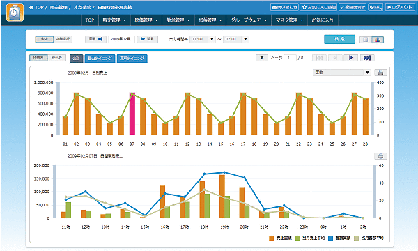 POSの精算データから、日々データを自動的に集計し、販売促進策の立案に直接役立つ各種分析帳表で提示します。