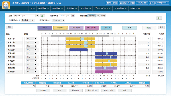 シフト表の作成や勤怠実績の入力により、給与の管理や適正配置の割り出しに貢献。