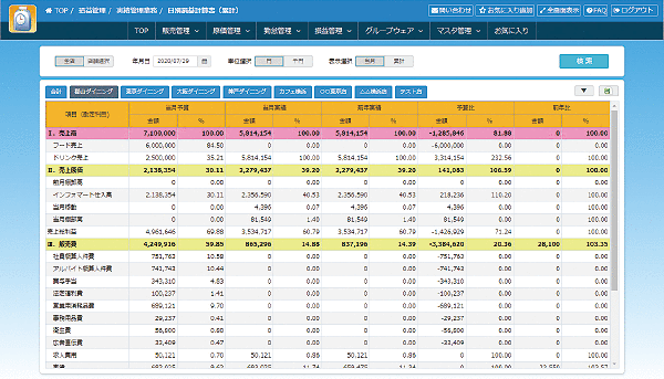 - 損益管理帳表のフォーマットをフリーレイアウトでプランニングすることが可能。
