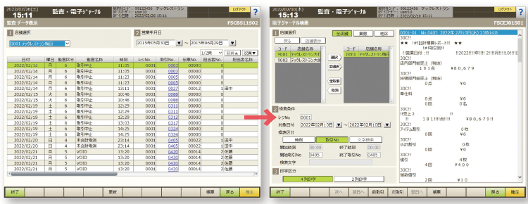 監査一覧から、気になる取引の電子ジャーナルを簡単に検索できます。